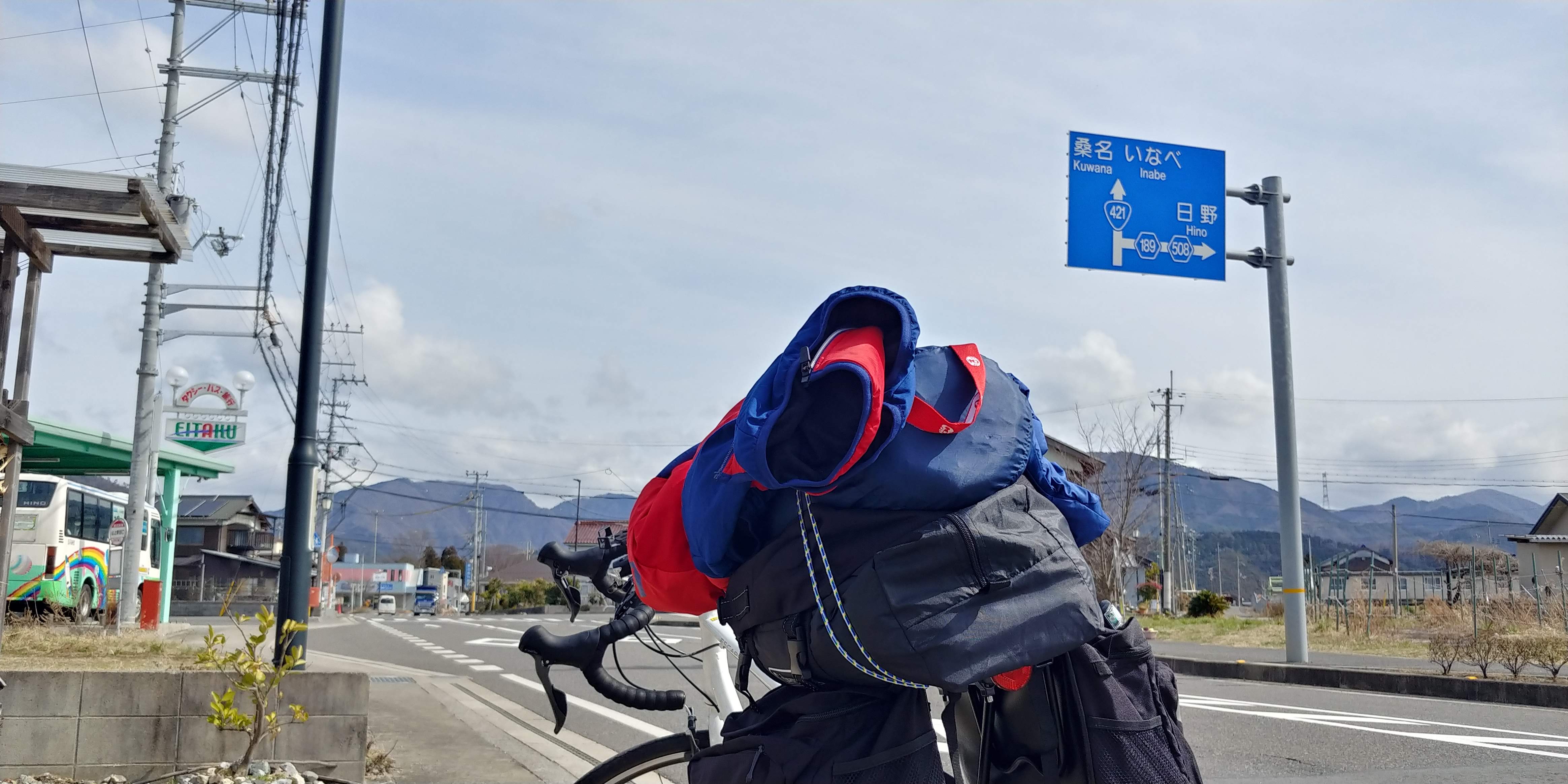 ロードバイクは超軽いギヤがあるためよっぽどの急な坂道以外は歩かずに走れる.しかし,荷台にテントや寝袋を積んでいるため結構重くなる.出発する前に一度装備を積んでみて走っておけばよかった感はある.初日のポッキリも回避できたかもしれないし...