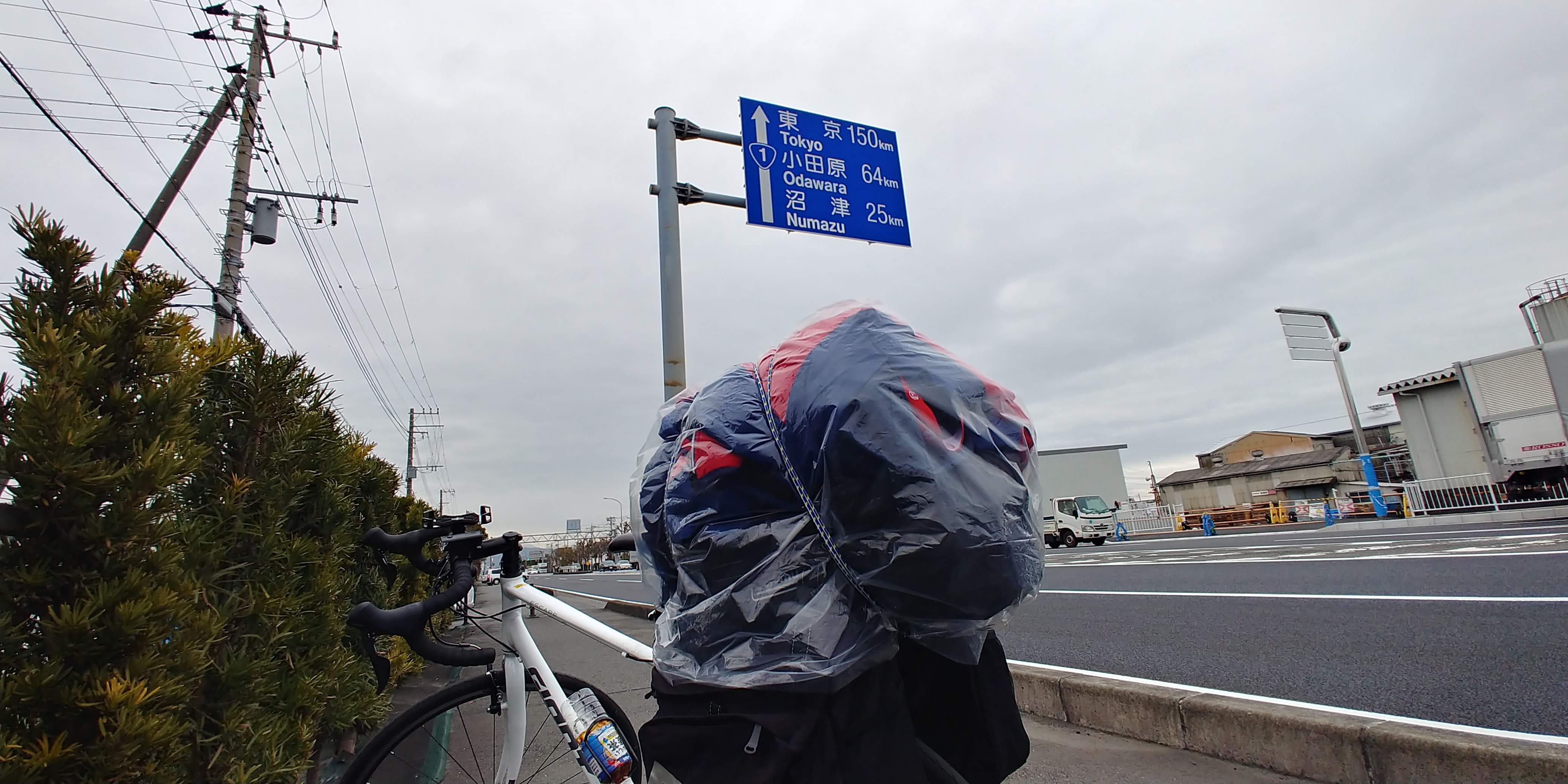 そして遂に道路標識に東京の文字が.道路標識は非常にモチベーションになる.また主な国道は始点からの距離が1kmおきに看板が立っておりこれをたどるのもサイクリング旅の醍醐味だ.