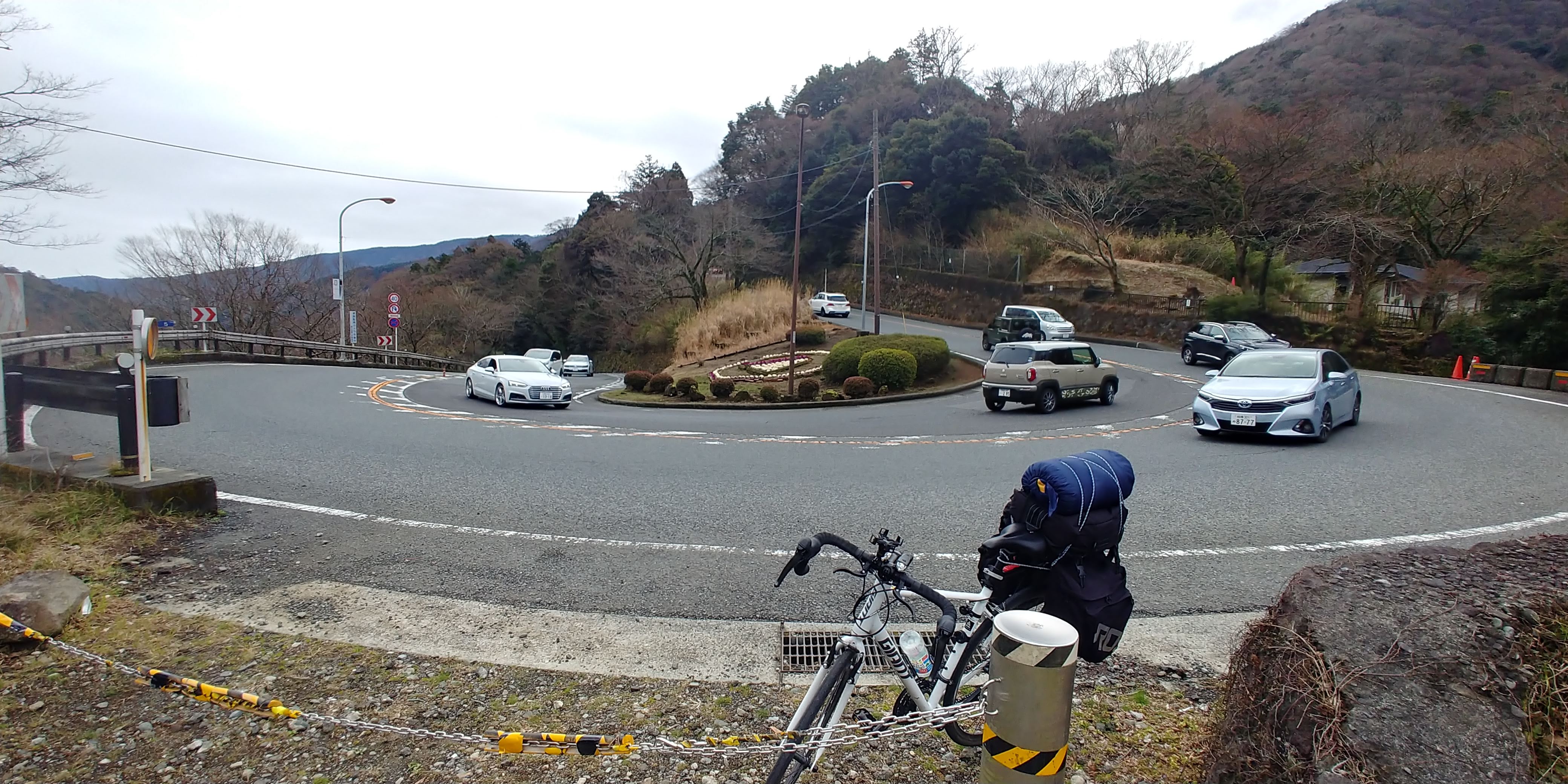 箱根の関を越えるとあとは下りである.箱根駅伝でよく見るが角を通過し,函嶺洞門などの横目に小田原中継所へ.ここからは4つの中継所をコンプリートする作戦にした.旅は何か小さなことでもいいから短期目標をたてないとやってられない.小田原で遅い昼食をとり,今日中に横浜入りを目指す.