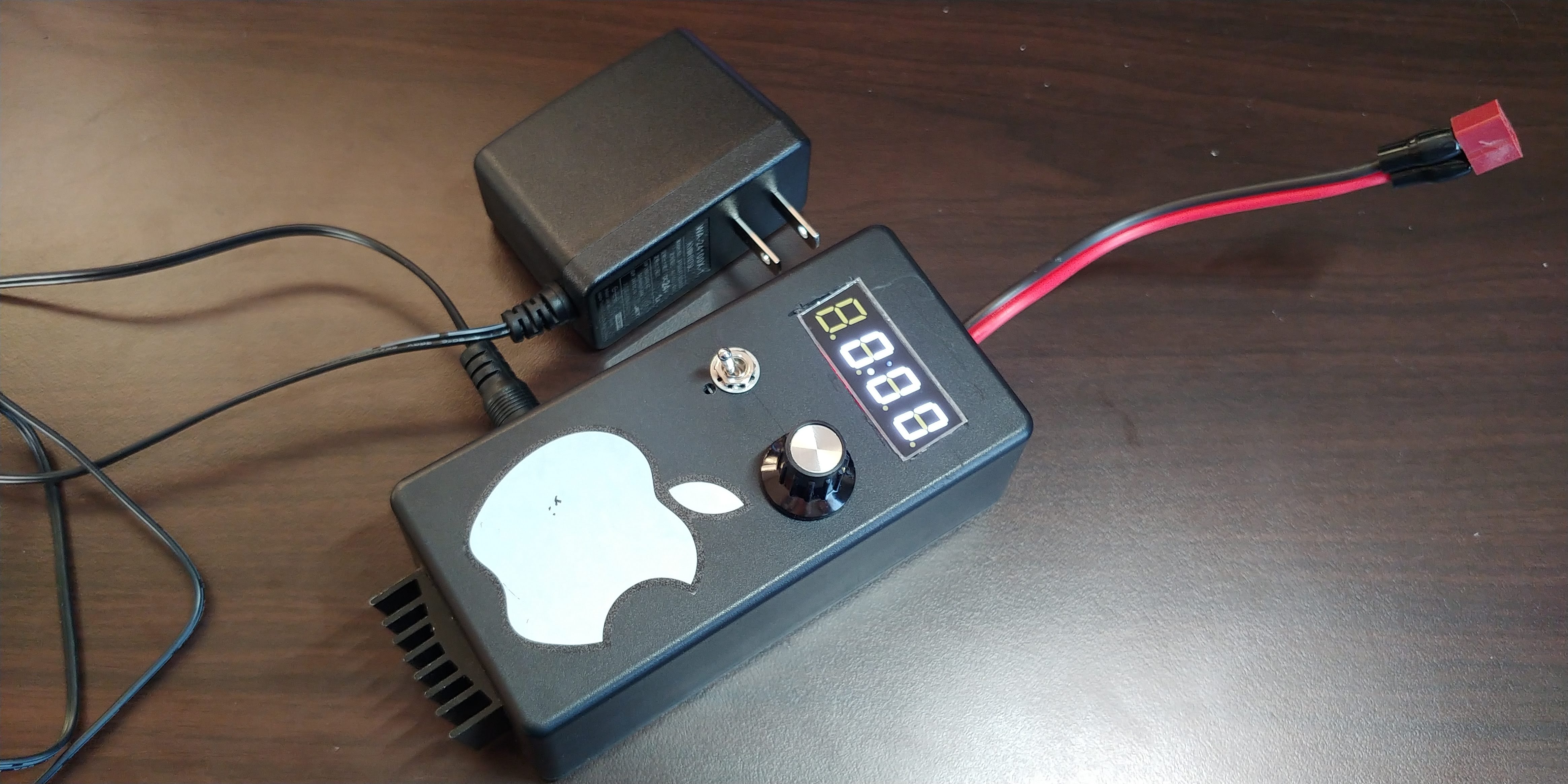 対象とするのは,380程度までのモータ,ソレノイド・電磁弁,サーボモータなどそれほど負荷がかからない機構に用いられるアクチュエータである.そこで12Vまでの範囲で電圧を可変できるようにする.電流は最大3Aとする.だれでも操作できるように,UIはできるだけわかりやすく単純にする.そこで電圧を表示するディスプレイを搭載,スイッチはON-OFFと出力調整のつまみの2つとする.また片手で持てるほどコンパクトな筐体にまとめる