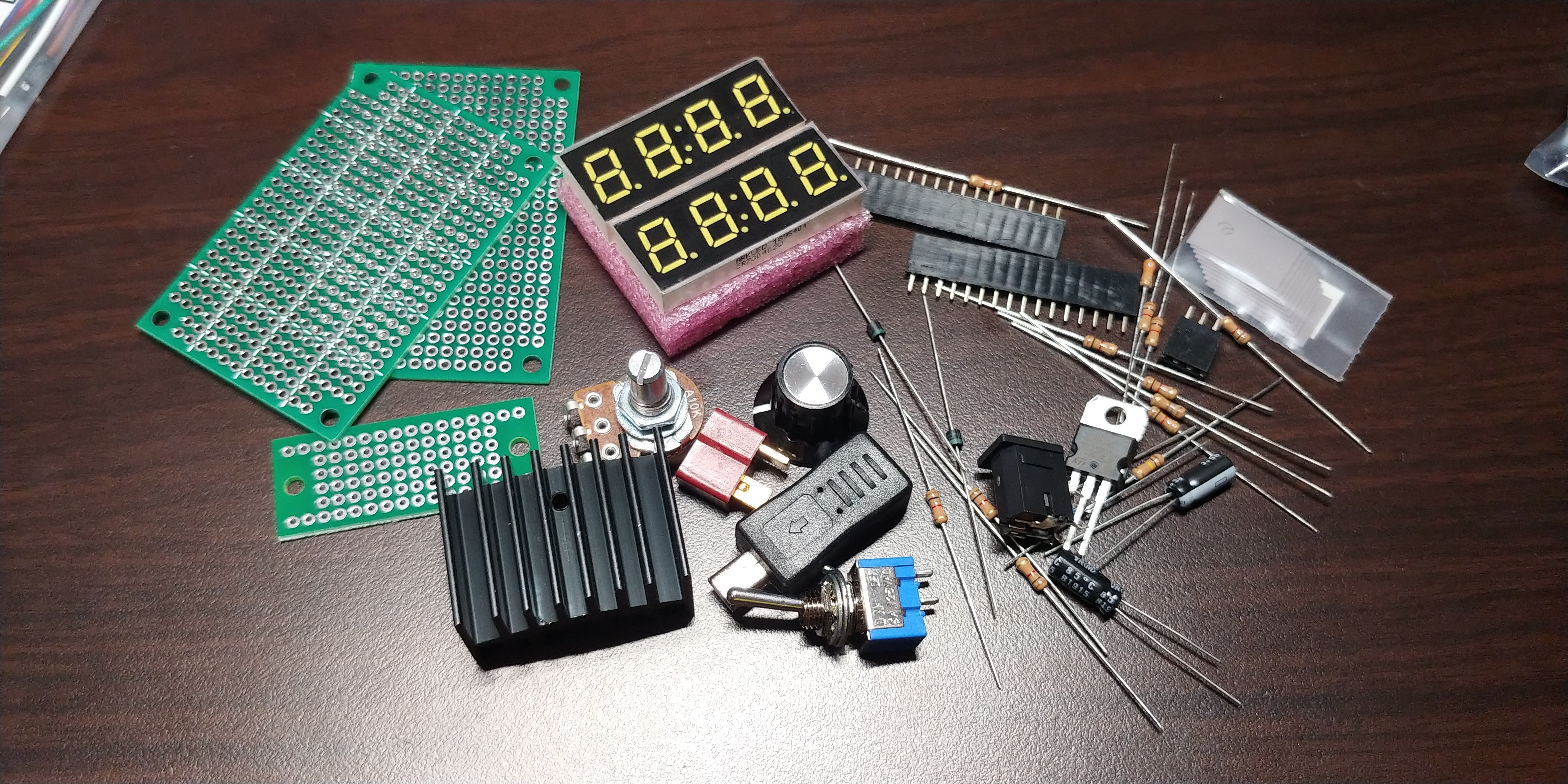 回路構成はこのような感じ.コンバータは市販のACアダプタを使う.電圧は可変三端子レギュレータでつくる.え,ショボいって?その通りでございます.2年間ろくに回路の勉強しなかった人間の末路.