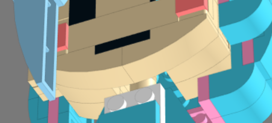 顔の表現がなんせ難しい.輪郭の曲線を出すのに,普通にブリックを下から上に積むと適切な下カーブのパーツがない.上カーブのパーツはあるので,顔は上下反転させて組んでいくことにした.こんな感じで途中で反転させてある.
