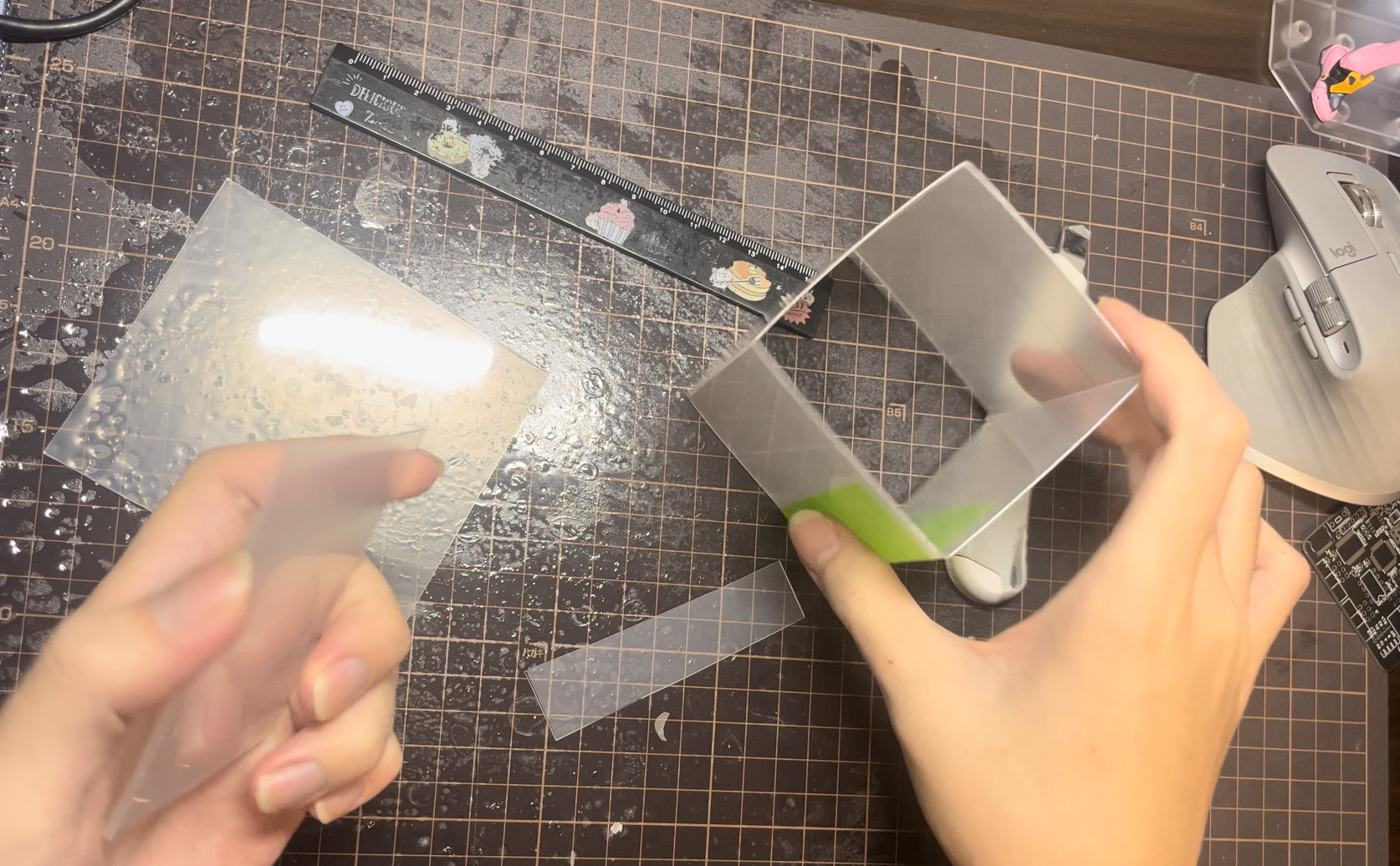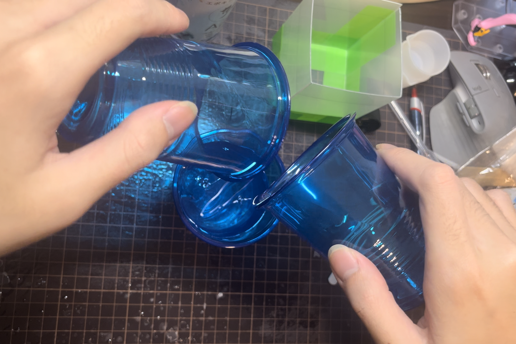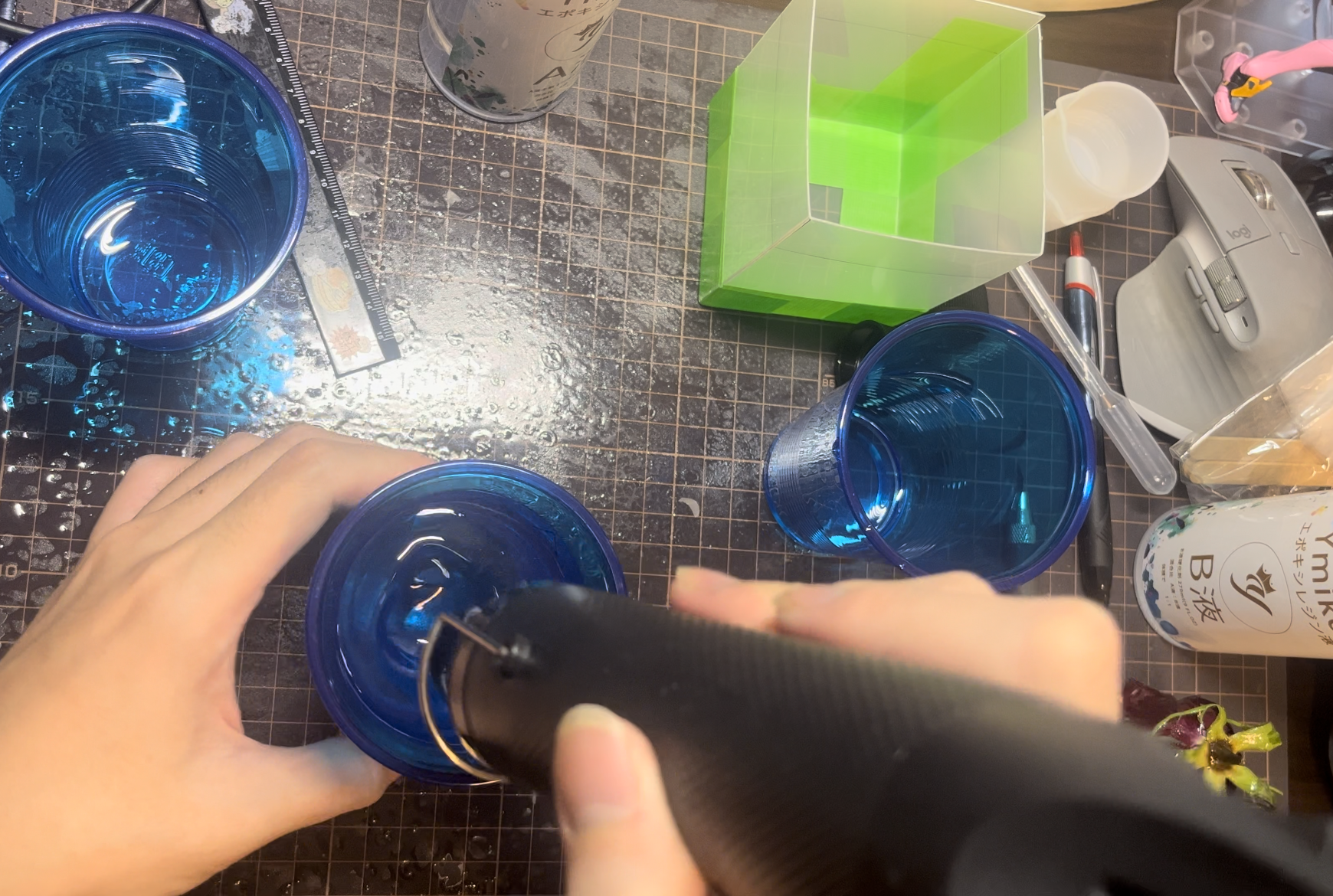 レジンのA液とB液を混合させる.気泡は放置とヒートガンで消す.こいつがかなりの曲者で,結局完成したものの気泡が大量に入ってしまった.