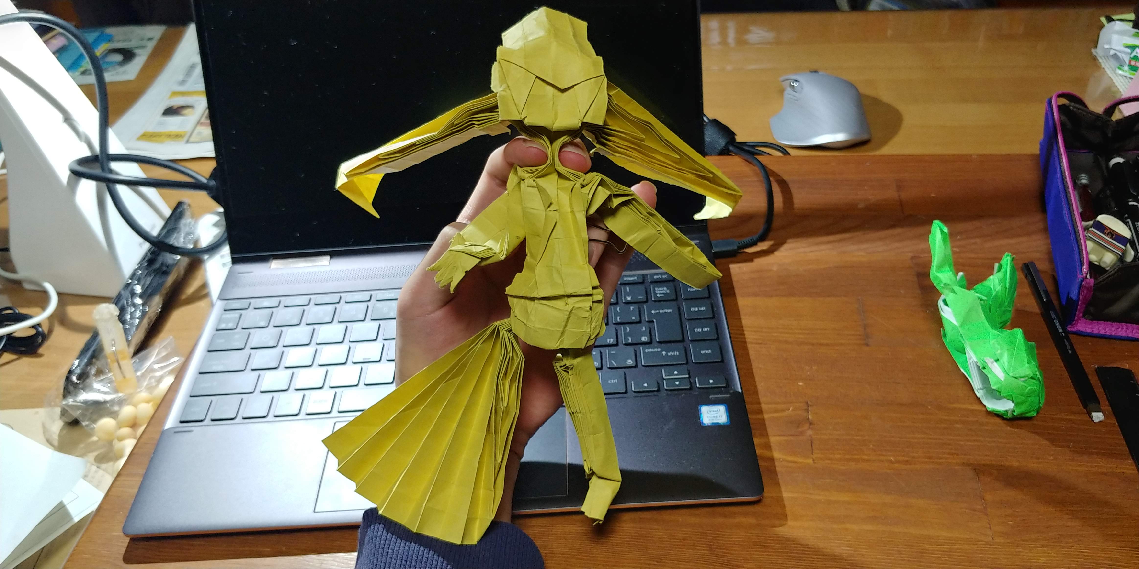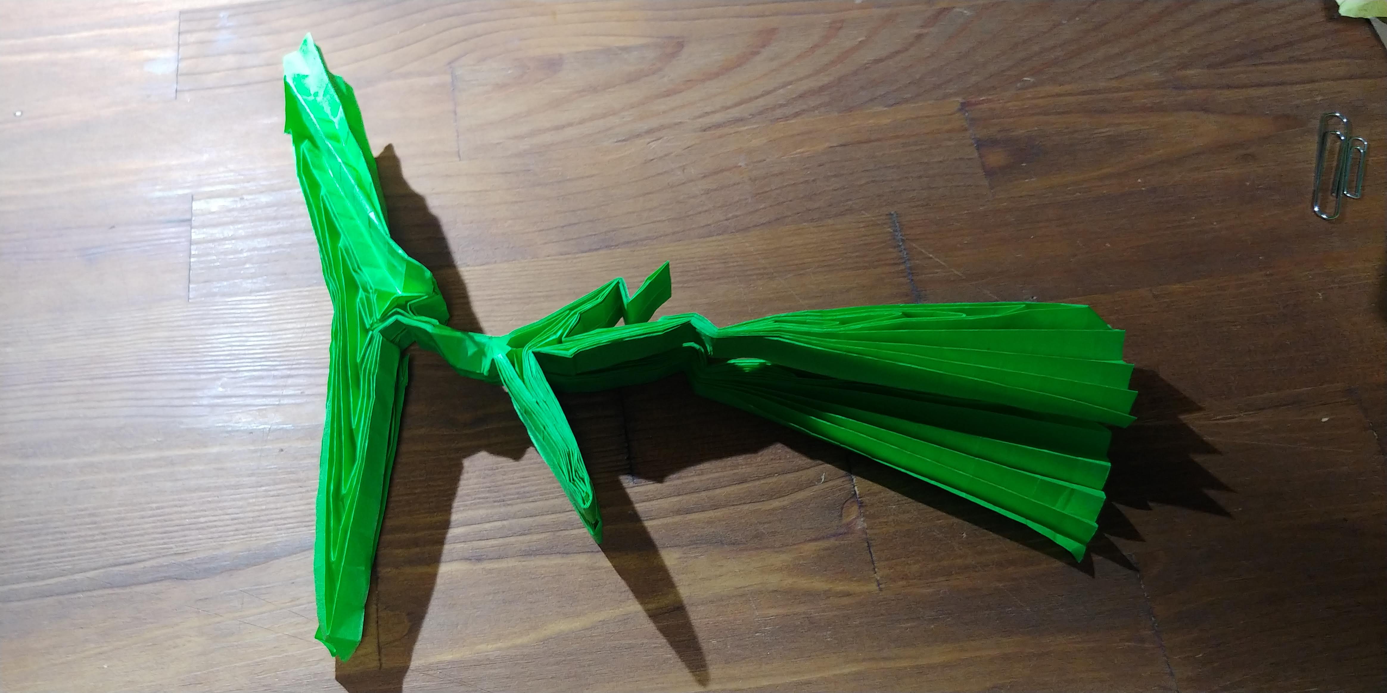 2019年は折り紙サークルの活動もあり人生で一番折り紙をした年だったと思う.創作をしたことがなかったため,なんかしてみようと思ってとりあえず蛇腹をこねこねして,人魚 を創作した.なんとか形にはなったのでしばらく蛇腹人物をやることにしようと思って第2弾として創作した.