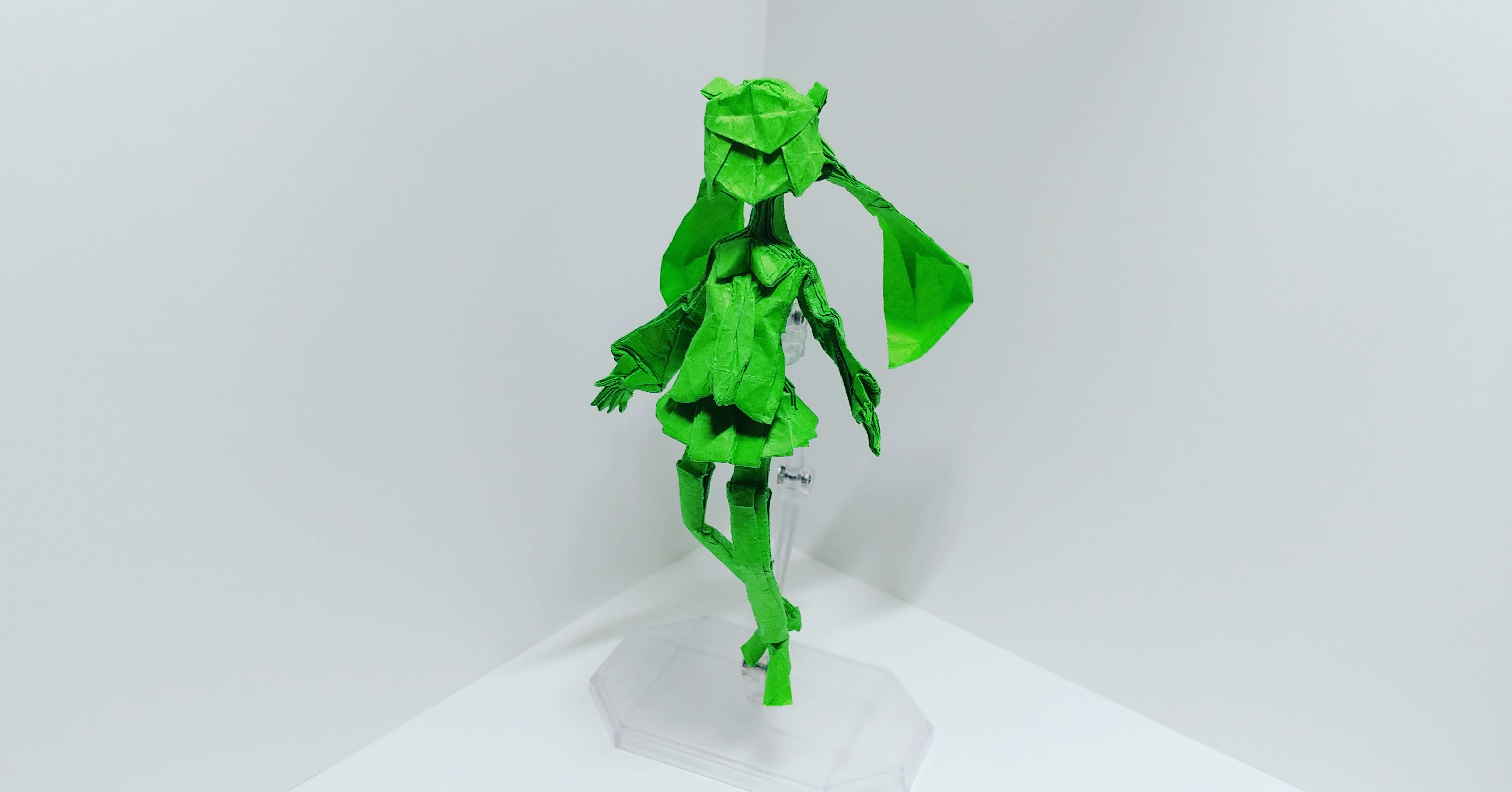 畳んだ.ミクの基本形.試作よりも脚を長くしてスカートを折りだす作戦.